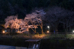 薬師ひろばの桜をライトアップを始めます。まだ2本しか咲いていないので試験点灯ですが夜10時ころまで行います。