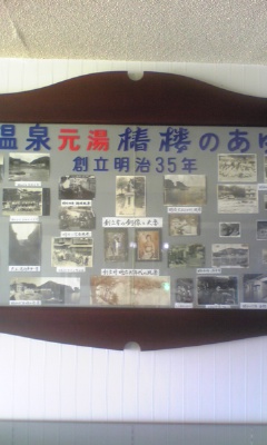 当館の創業は明治35年(1902年)です。皆様に支えられお陰様で5年前に一区切りの100年を迎えられました。初代から脈々と受け継がれている伝統の重みを肌で感じる今日この頃。私も1ランナーとして無事次の世代に受け継ぐ事が出来ればと日々自分なりに頑張っています・・・はずです(^^;フロントより階段を上がった9階スペースに「椿楼の歩み」と題した展示コーナーが御座います。階段を上ると直ぐに大きなガラス張りのケースに昔からの写真がいくつか展示されたものが目に付きます。